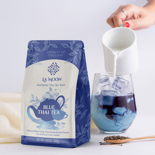 LA MOON TEA Blue Thai Tea Mix - Traditional Loose Leaf from Butterfly Pea Flower and Assam Black for Home-made Iced Tea, Boba & Latte No Food Dye, 7.05 Oz.